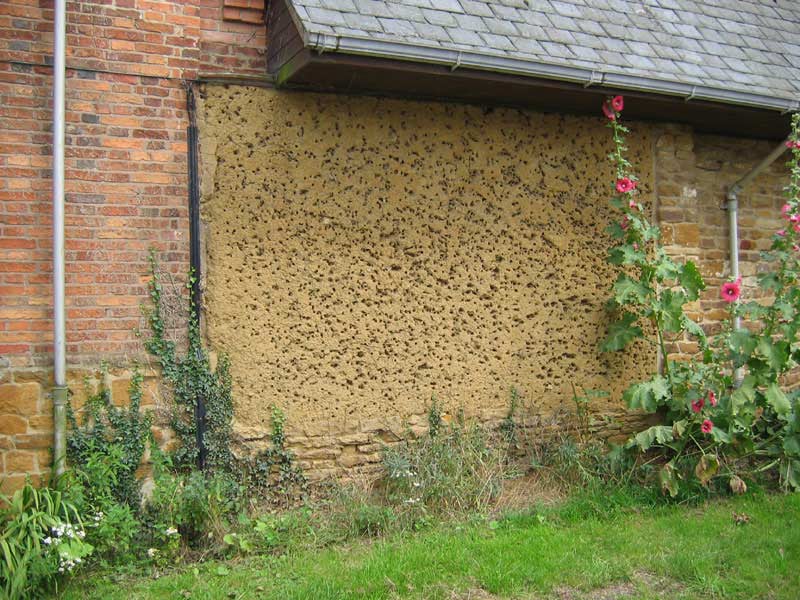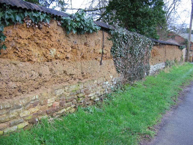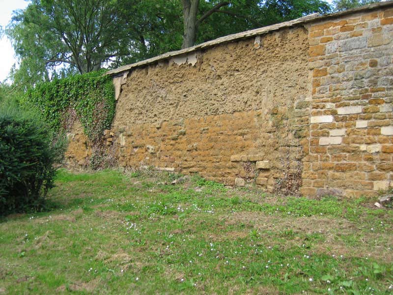 Typical old village walls in the Leicestershire/Northamptonshire earth building belt.