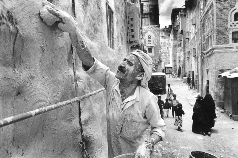 In the Yemen specialist workers burn limestone to make hydraulic lime with which they plaster their earth buildings
